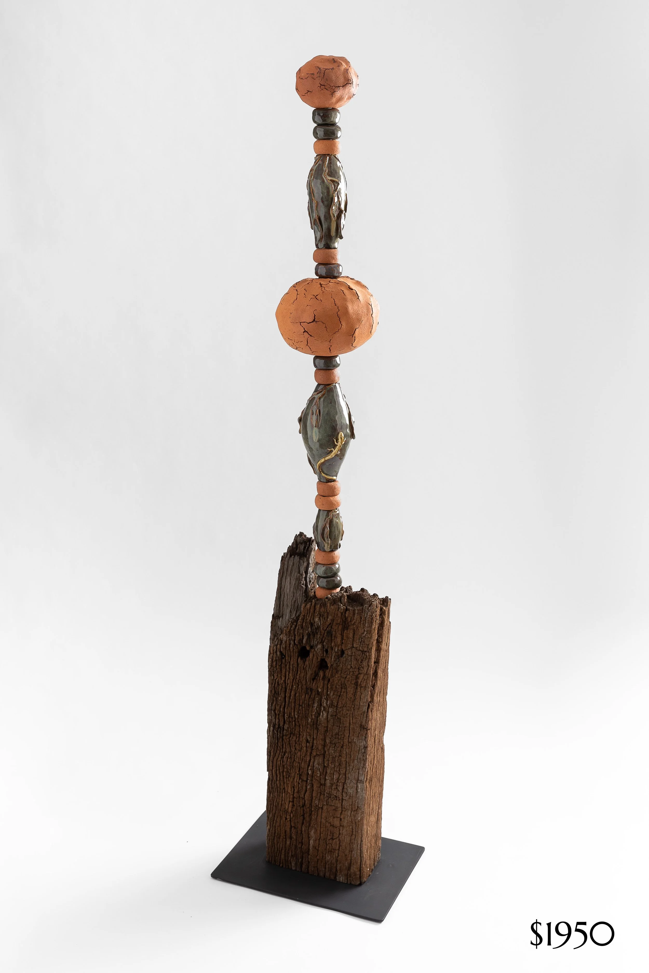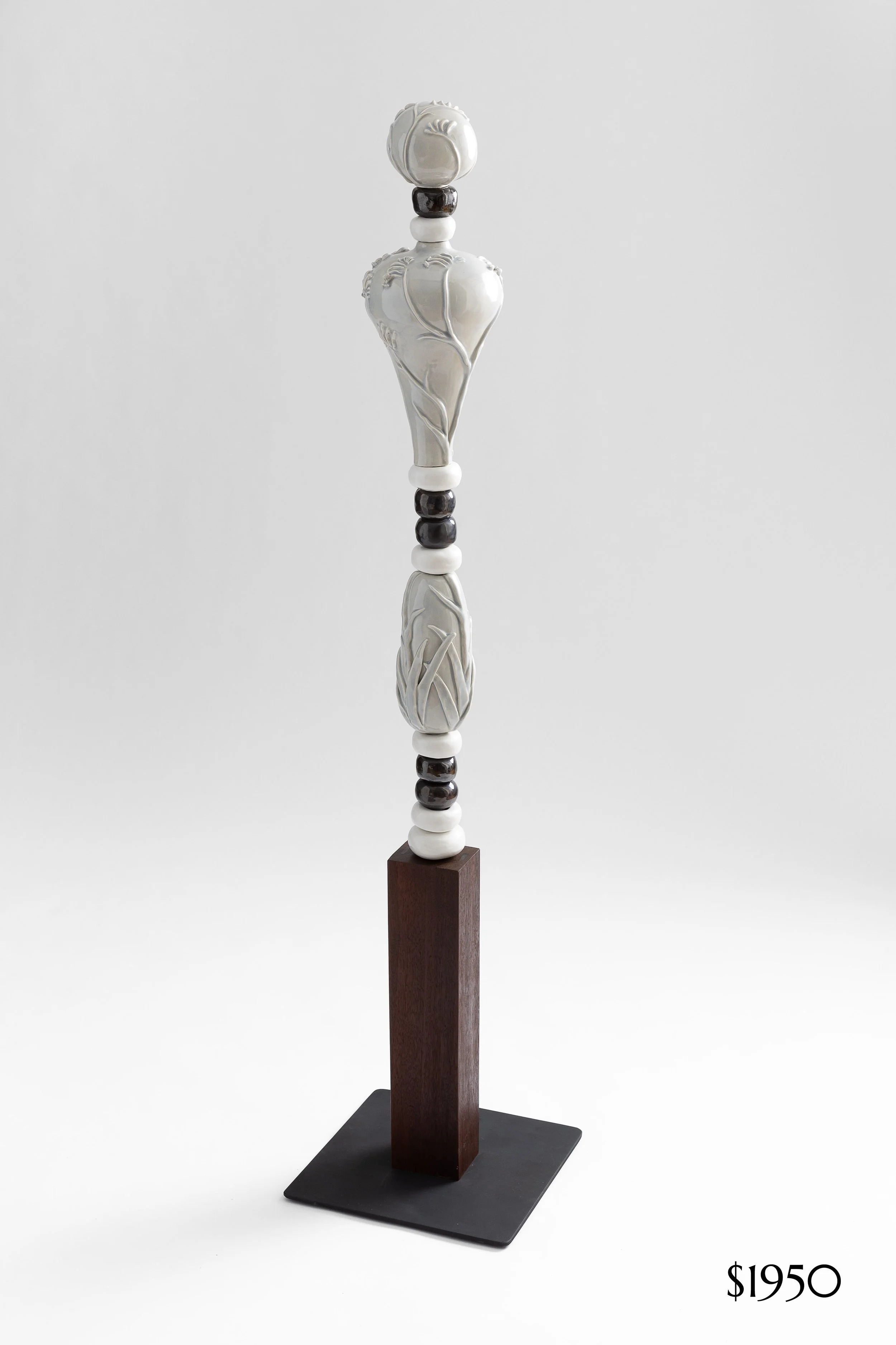 This body of work featured a series of ceramic stacks and pots celebrating the diverse natural beauty around her. From stunning beaches, iconic eucalypts, historic crystal deposits to the harsh loveliness of the outback, the elements of each stack reflect a single theme, inspired by nature that has moved her.